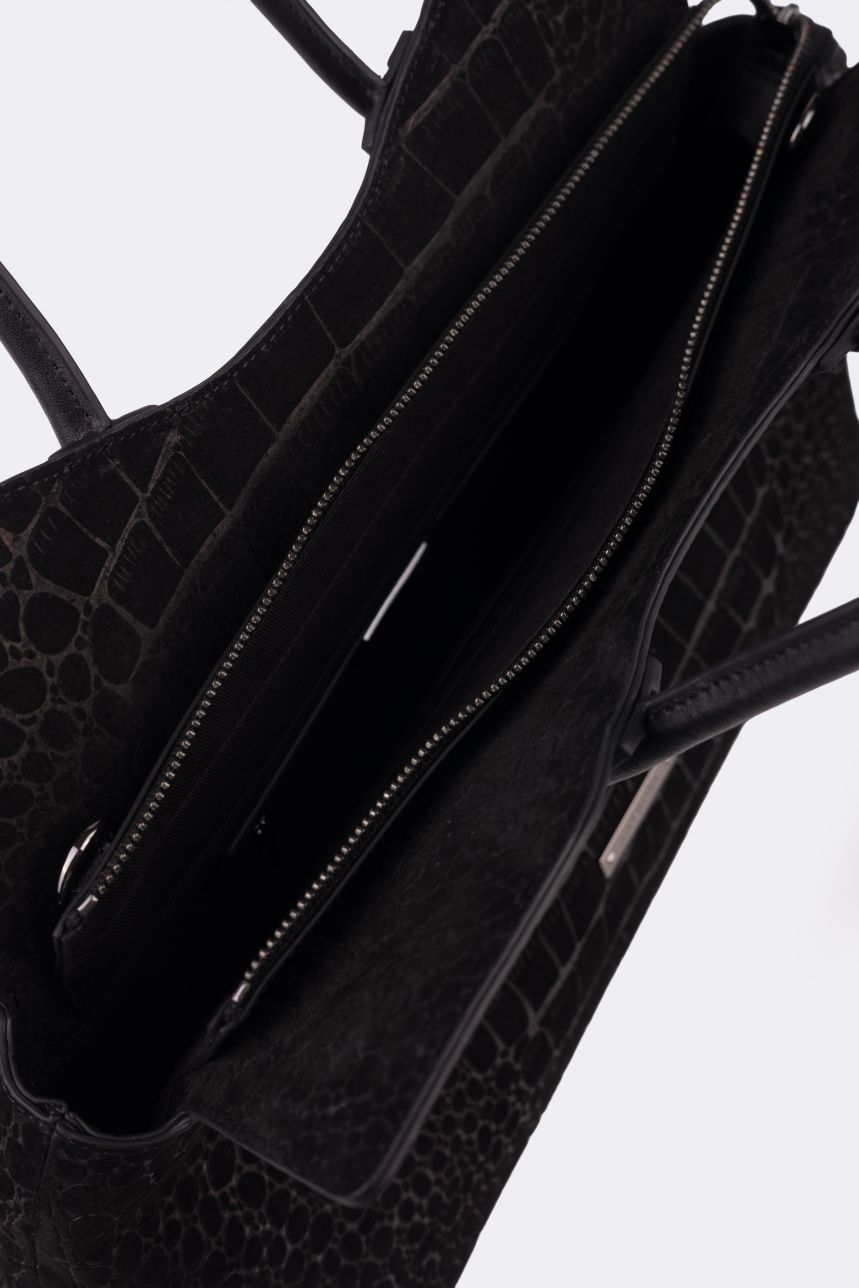 Shoulder bag made of smooth and deer-printed calfskin with suede details on the flap, leather and metal closure, adjustable shoulder strap with maxi buckle, crossover strap, light gold accessories.