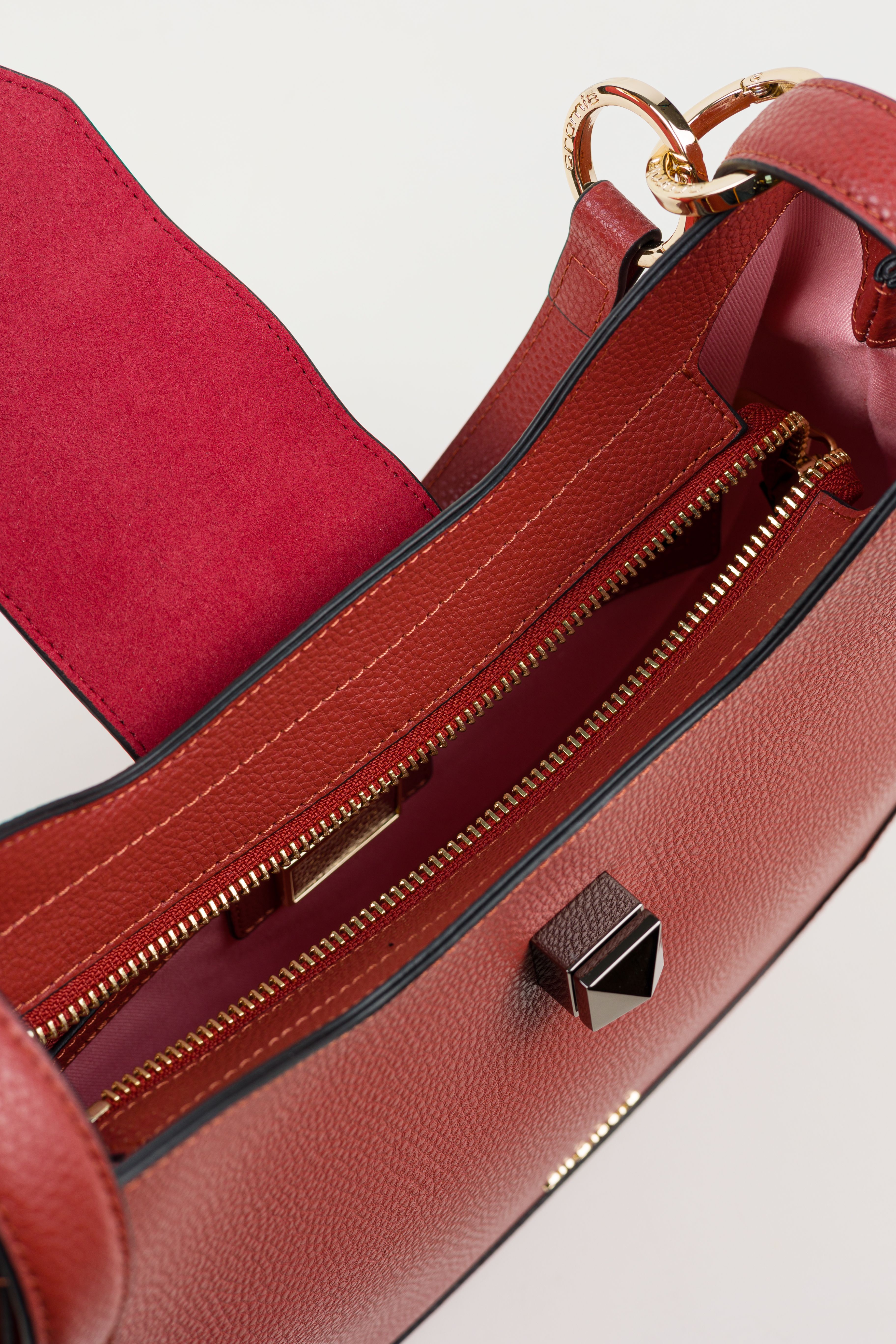 BORSA HOBO REALIZZATA IN VITELLO STAMPA CERVO, IMPREZIOSITA DALLA ICONICA CHIUSURA A GIRELLO IN DOPPIA FINITURA ORO CHIARO-RUTENIO, DECORATA CON LETTERING CROMIA IN METALLO ORO.
