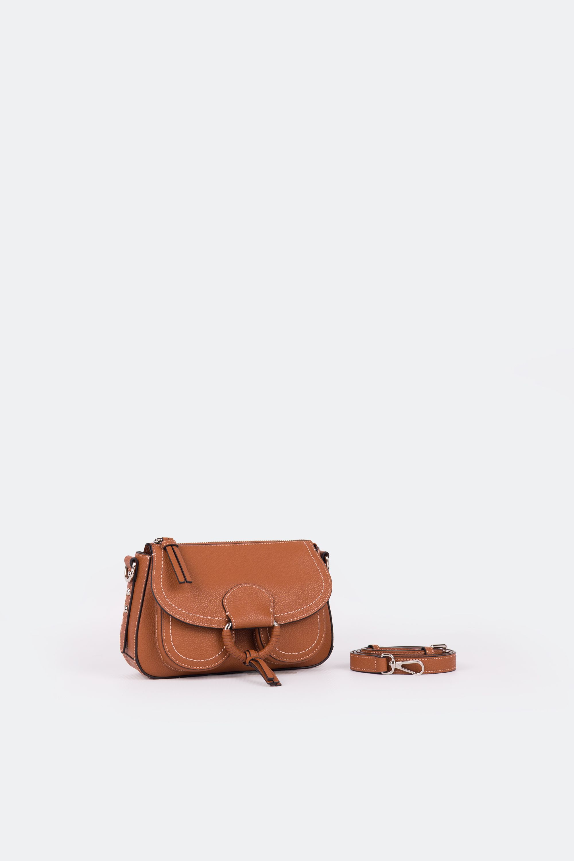 Minibag con lampo con due mini tasche sul davanti , realizzata in pelle stampa cervo, dotata di tracolla per l’indosso a crossover, accessori oro chiaro.