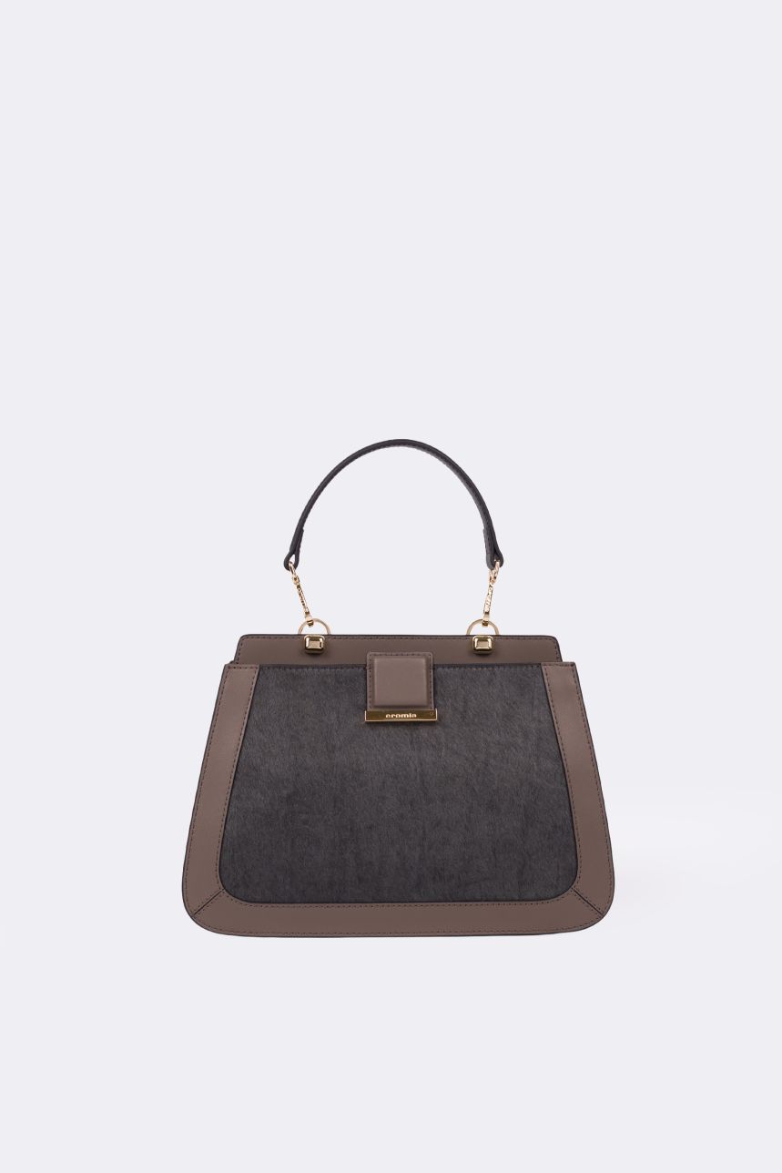 Baguette made of smooth calfskin, with a black outline in color contrast and a metallic twist lock enriched with a leather detail with pyramidal studs. A mix of elegance and character enhancing the bag with a strong and contemporary touch.