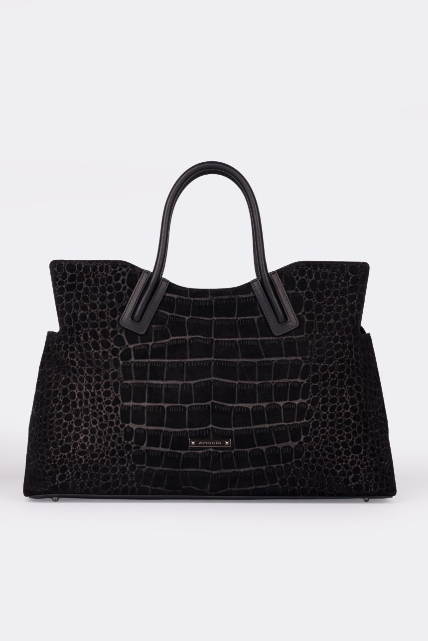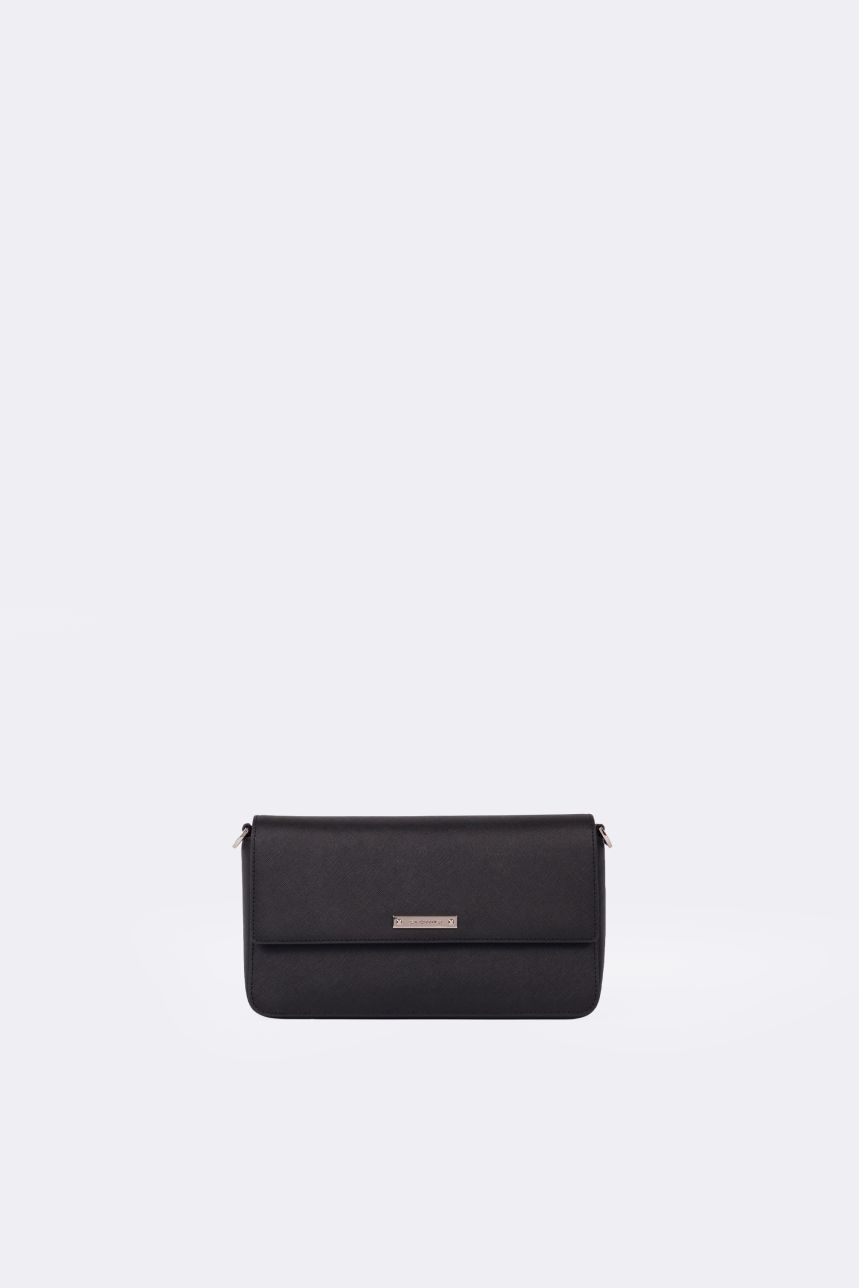 Flap bag made of smooth calfskin, leather and metal rings on the handle, adjustable leather strap, and enameled metal closure with Cromia logo. Light gold accessories.