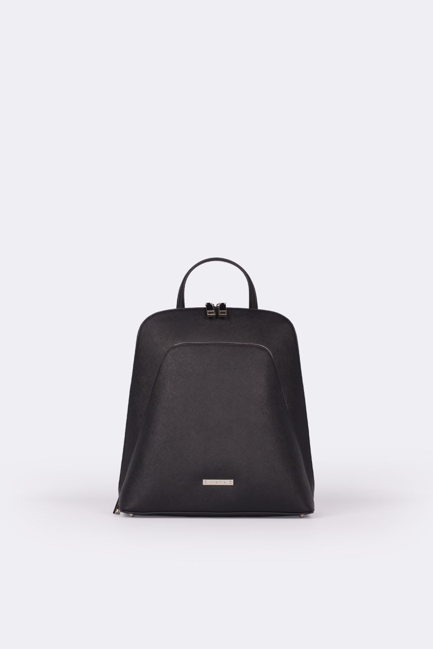 Flap bag made of smooth calfskin, leather and metal rings on the handle, adjustable leather strap, and enameled metal closure with Cromia logo. Light gold accessories.